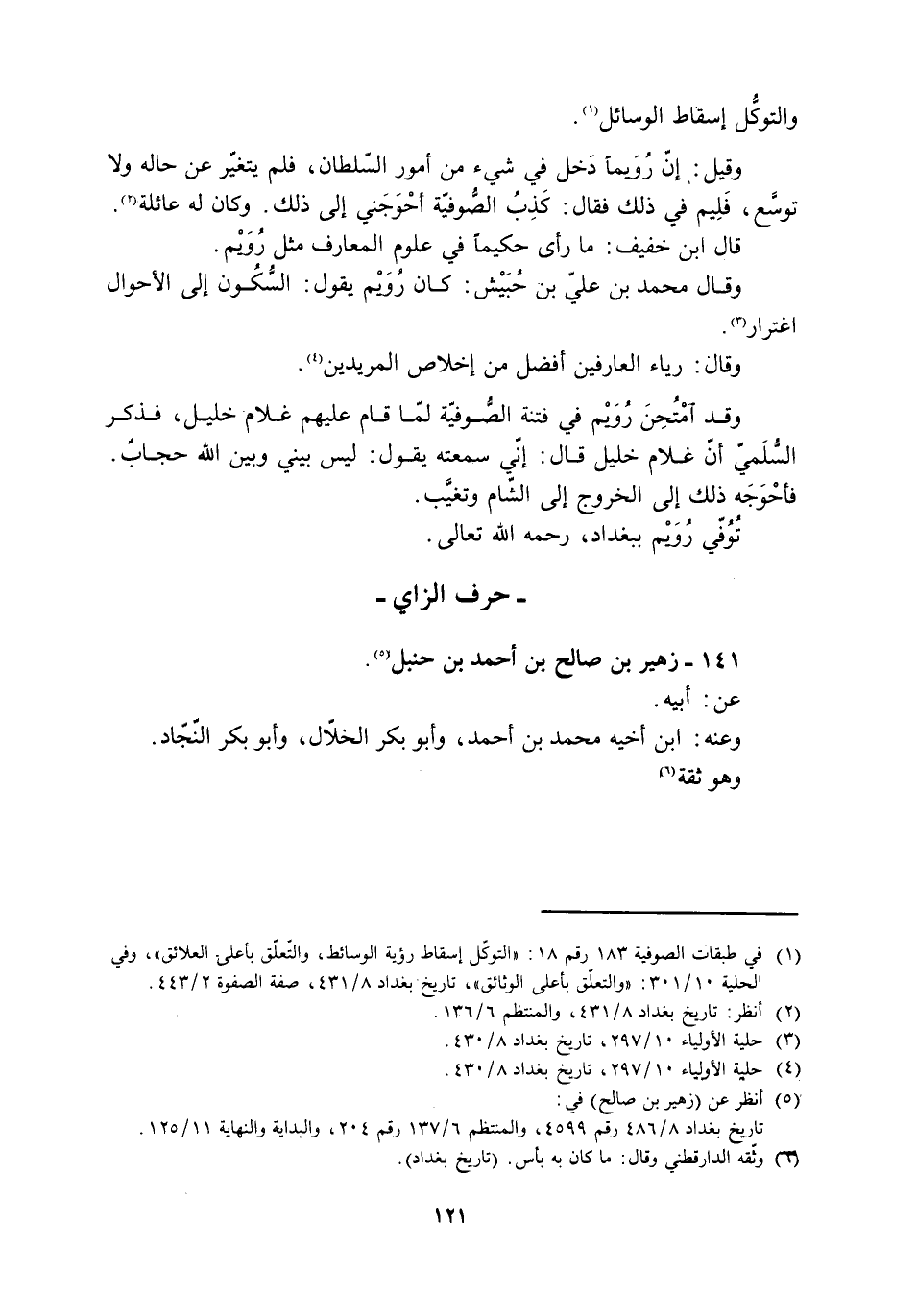 [4] حلية الأولياء 10/ 297، تاريخ بغداد 8/ 430.