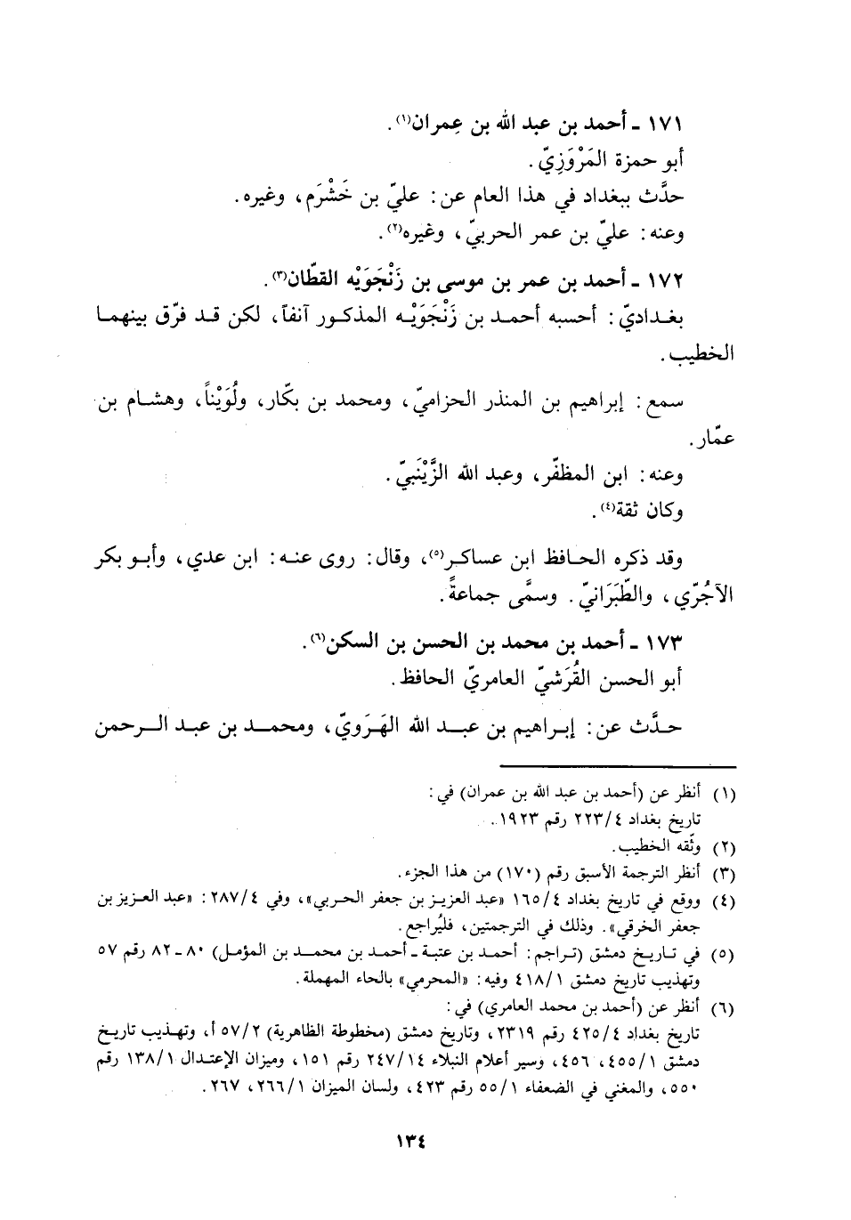 [4] ووقع في تاريخ بغداد 4/ 165 «عبد العزيز بن جعفر الحربي» ، وفي 4/ 287: «عبد العزيز بن جعفر الخرقي» . وذلك في الترجمتين، فليراجع.