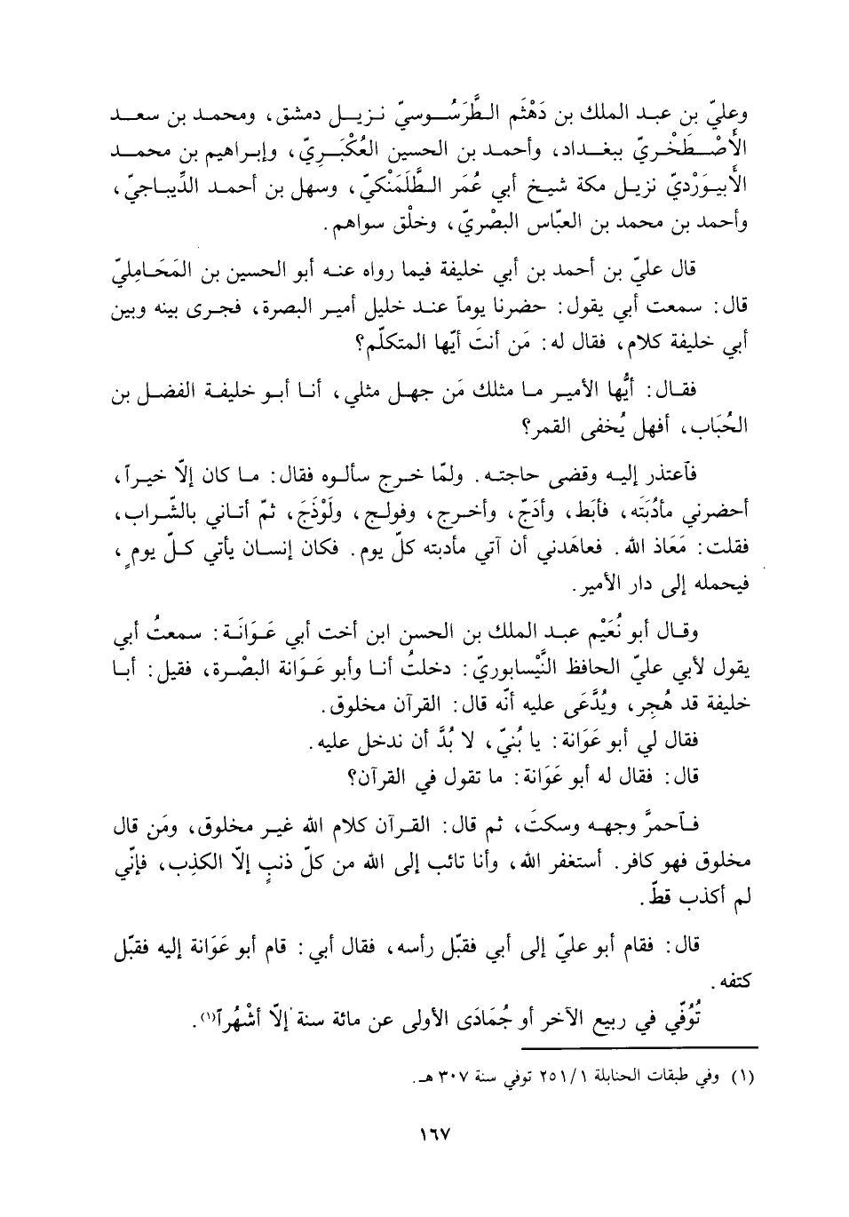 [1] وفي طبقات الحنابلة 1/ 251 توفي سنة 307 هـ.