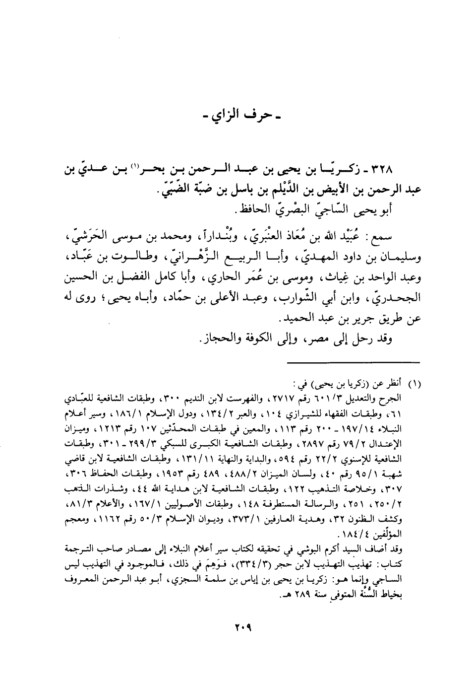 328- زكريّا بن يحيى بن عبد الرحمن بن بحر [1] بن عديّ بن عبد الرحمن بن الأبيض بن الدَّيْلم بن باسل بن ضبّة الضّبّيّ.