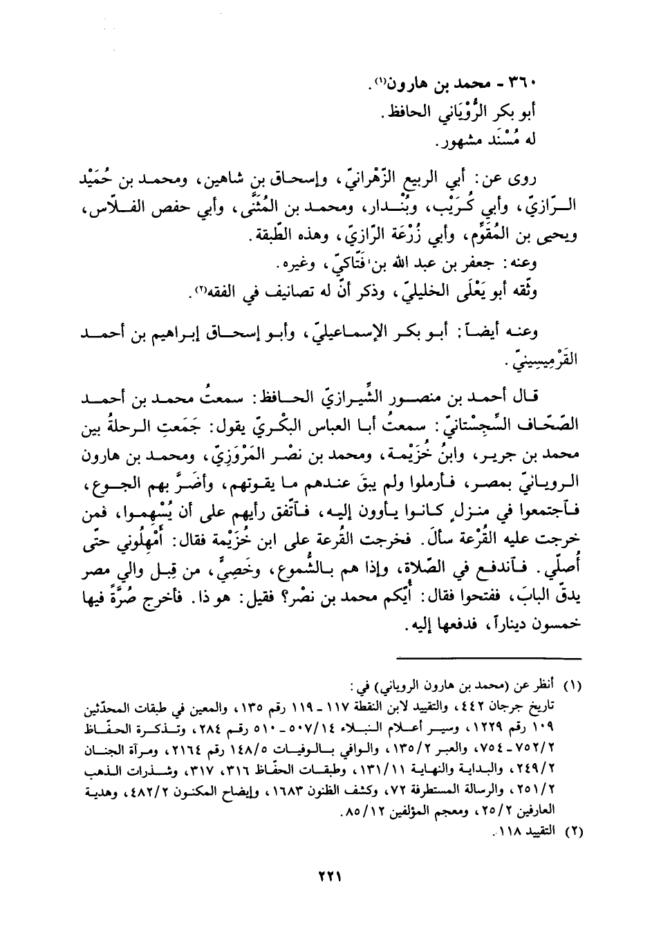 [1] انظر عن (محمد بن هارون الروياني) في: