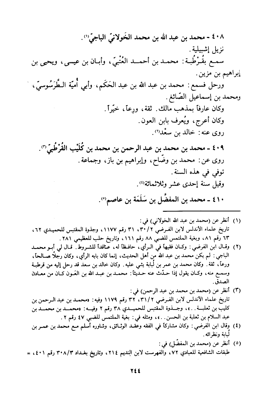 409- محمد بن محمد بْن عَبْد الرَّحْمَن بْن محمد بْن كُلَيْب القُرْطُبيّ [3] .
