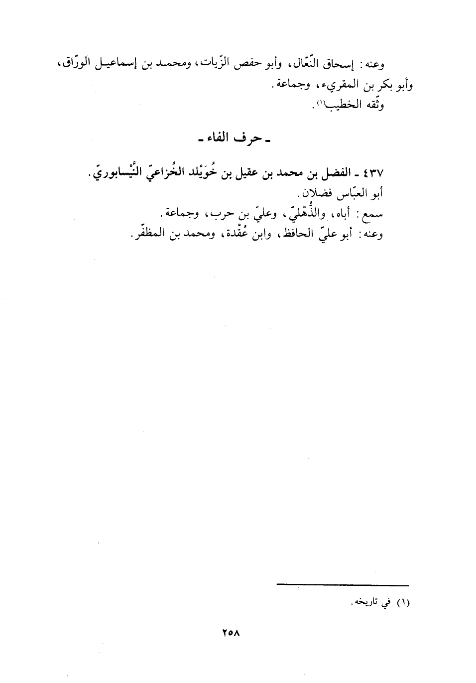437- الفضل بْن محمد بن عقيل بْن خُوَيْلد الخُزاعيّ النَّيْسابوريّ.