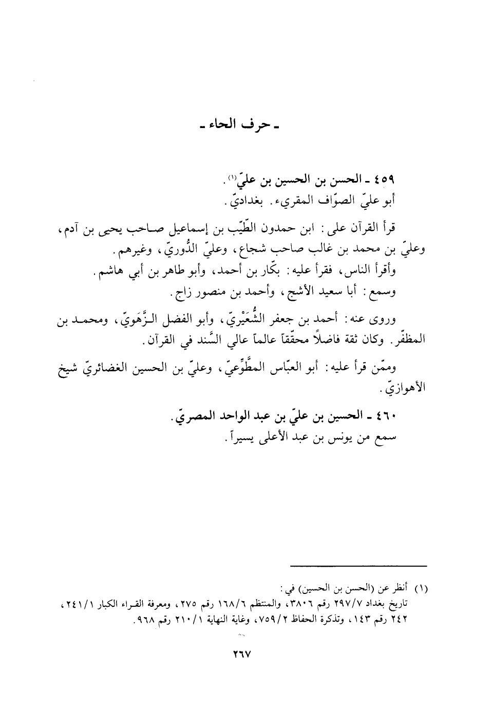 460- الحسين بْن عليّ بْن عَبْد الواحد المصريّ.