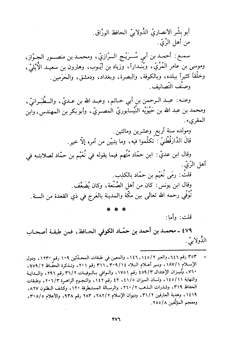 479- محمد بن أحمد بْن حمّاد الكوفي الحافظ، فمن طبقة أصحاب الدّولابيّ.