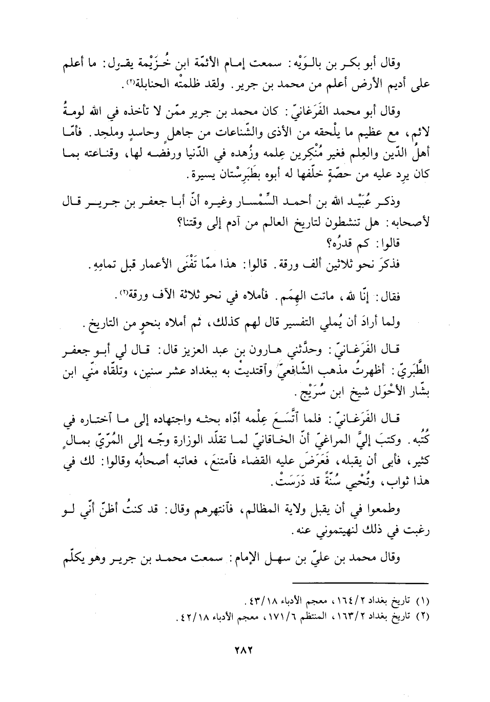 [2] تاريخ بغداد 2/ 163، المنتظم 6/ 171، معجم الأدباء 18/ 42.