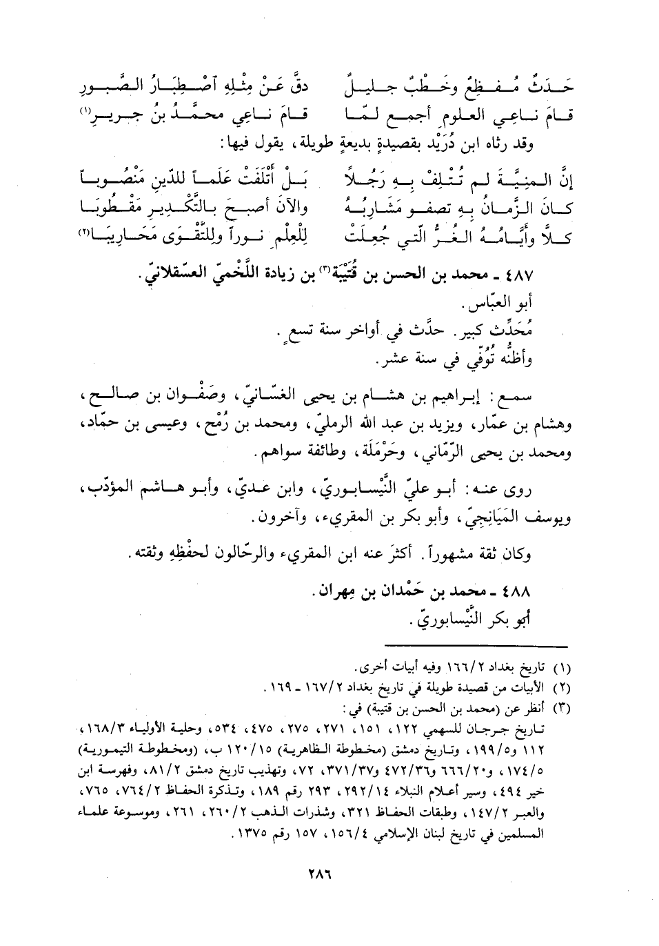 [2] 487- محمد بن الحَسَن بْن قُتَيْبة [3] بْن زيادة اللخميّ العسقلاني.