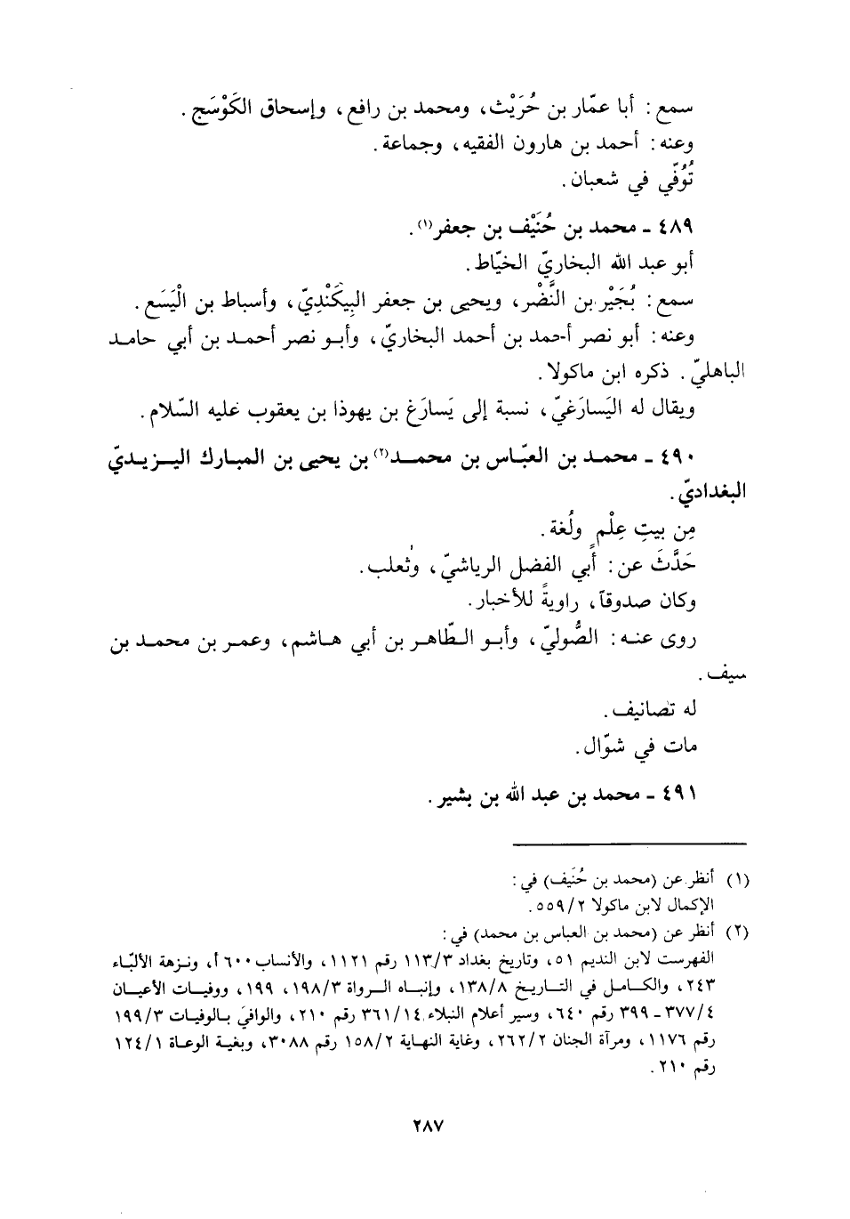 490- محمد بن العبّاس بْن محمد [2] بن يحيى بْن المبارك اليزيديّ.