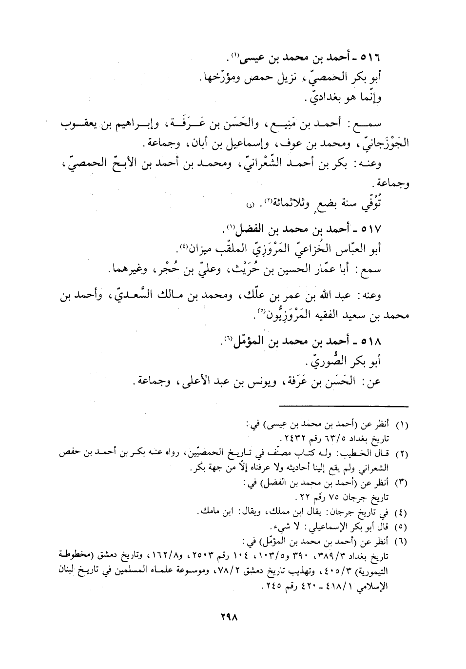 [6] انظر عن (أحمد بن محمد بن المؤمّل) في: