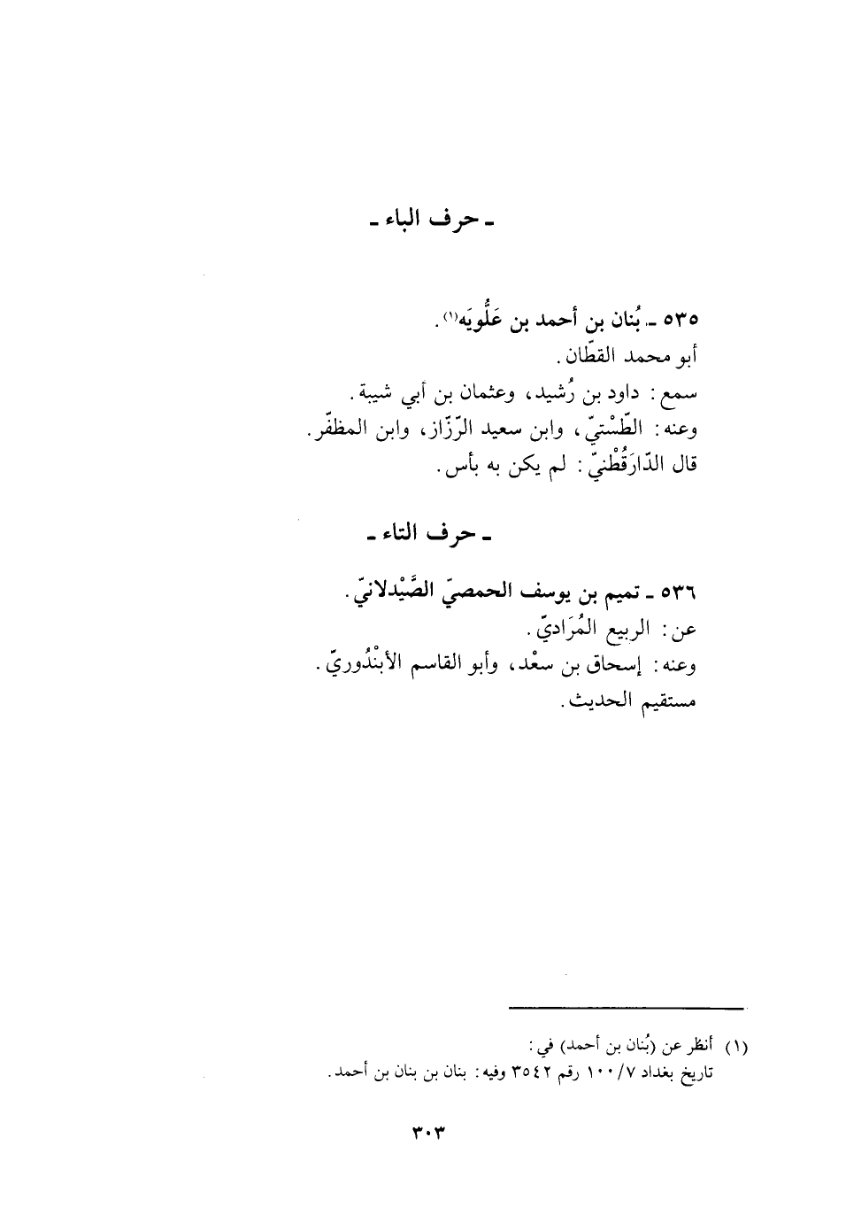 تاريخ بغداد 7/ 100 رقم 3542 وفيه: بنان بن بنان بن أحمد.