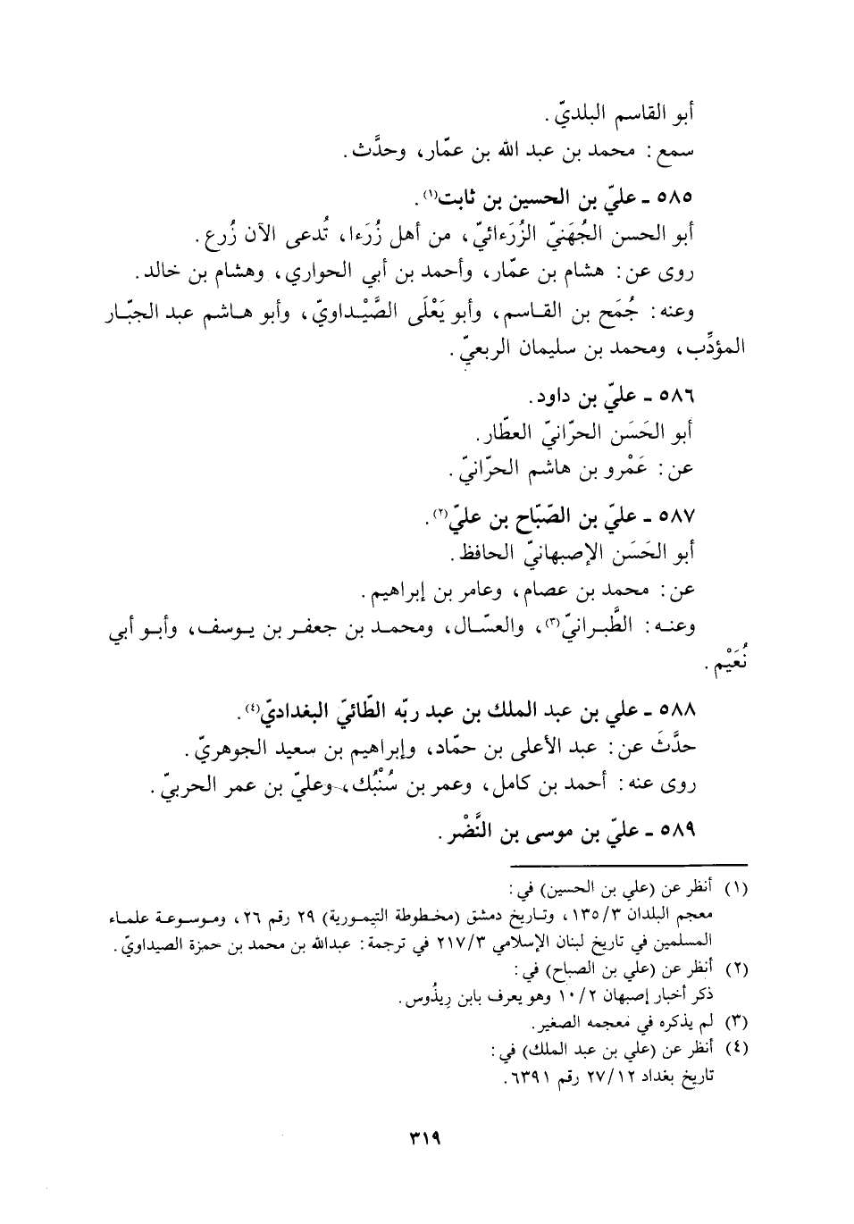 588- عليّ بْن عَبْد الملك بْن عَبْد ربّه الطّائيّ البغداديّ [4] .