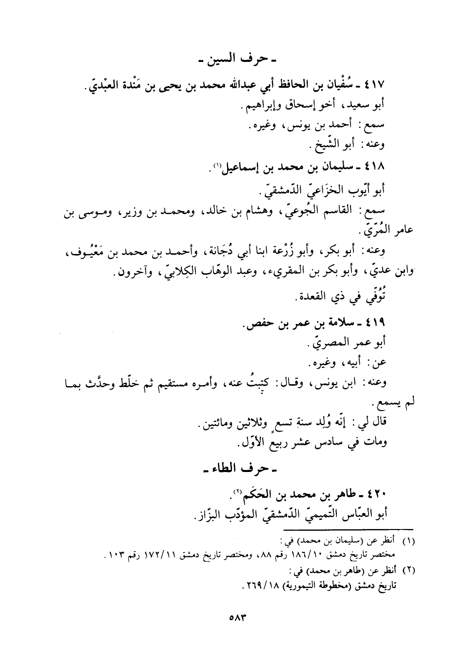 مختصر تاريخ دمشق 10/ 186 رقم 88، ومختصر تاريخ دمشق 11/ 172 رقم 103.
