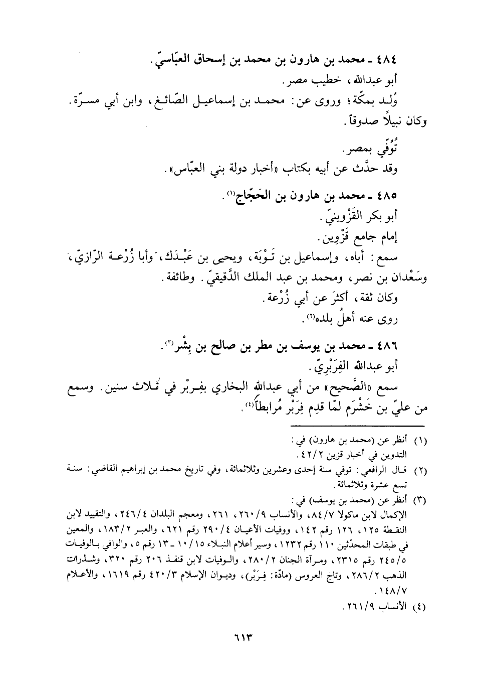 484- محمد بْن هارون بْن محمد بْن إِسْحَاق العبّاسيّ.
