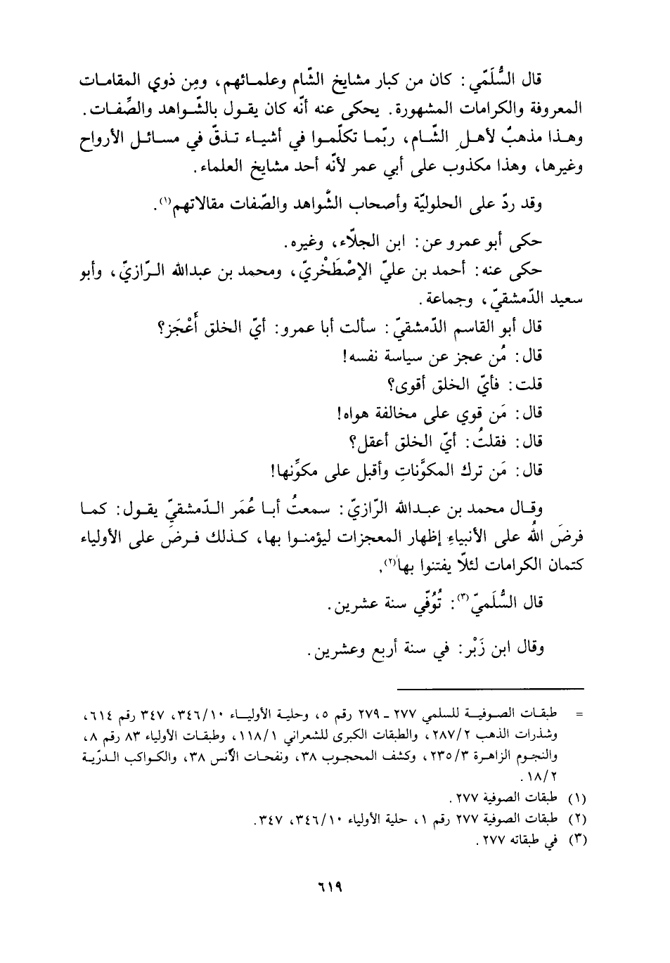 [2] طبقات الصوفية 277 رقم 1، حلية الأولياء 10/ 346، 347.