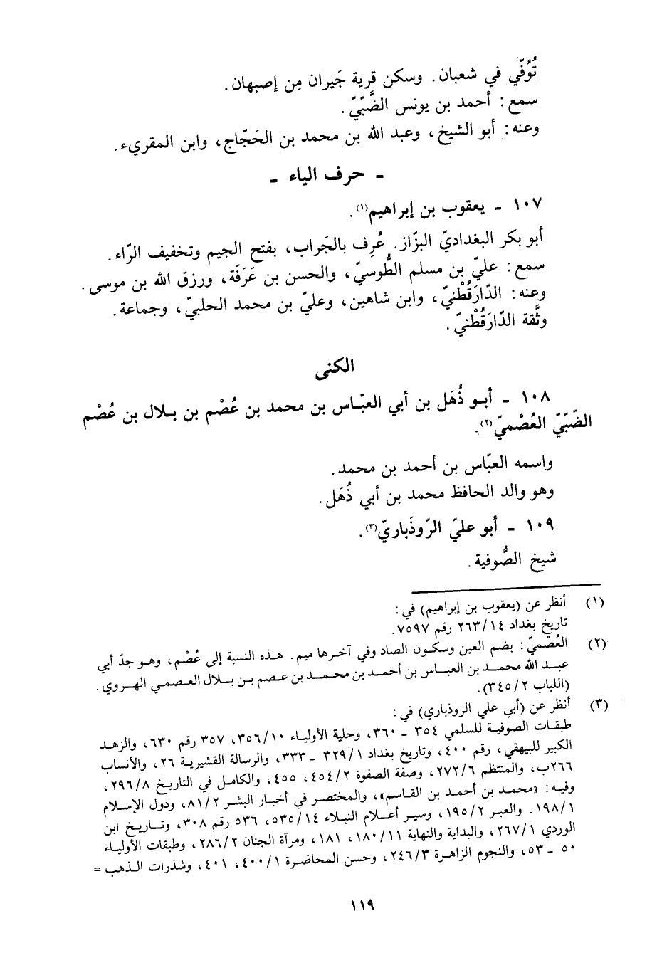 [2] العصميّ: بضم العين وسكون الصاد وفي آخرها ميم. هذه النسبة إلى عصم، وهو جدّ أبي عبد الله محمد بن العباس بن أحمد بن محمد بن عصم بن بلال العصمي الهروي.