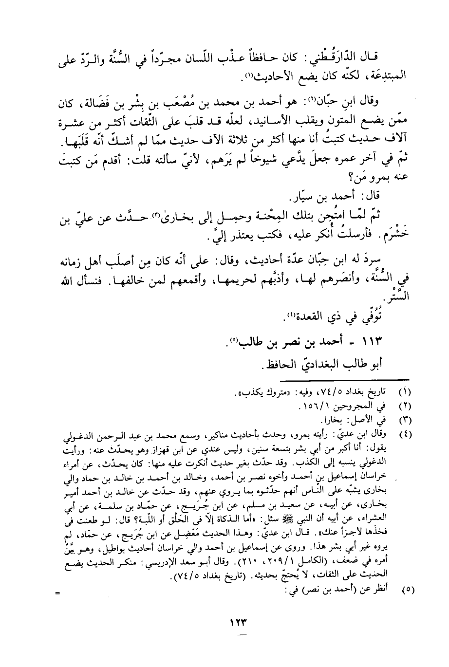 ثمّ لمّا امتحن بتلك المحنة وحمل إلى بخارى [3] حدَّث عن عليّ بن خشرم. فأرسلت أنكر عليه، فكتب يعتذر إليَّ.