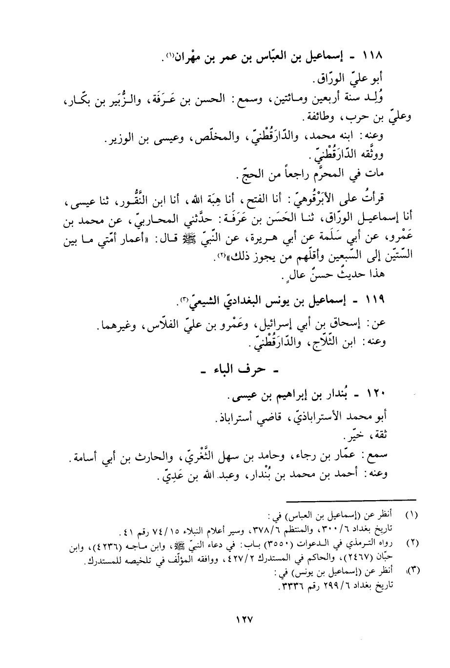 119- إِسْمَاعِيلُ بْنُ يُونُسَ الْبَغْدَادِيُّ الشِّيعِيُّ [3] .