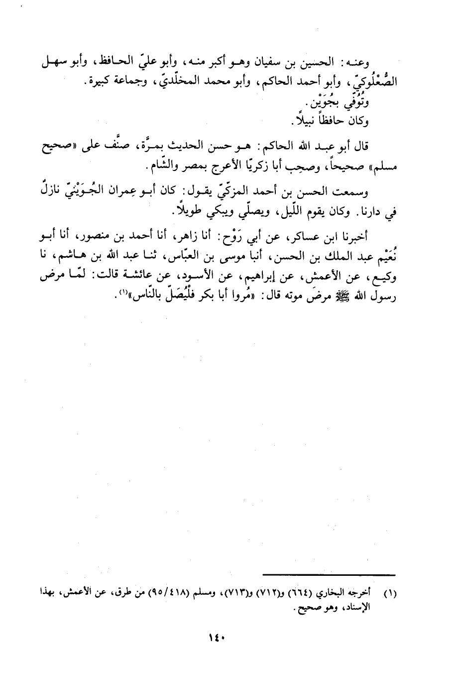 [1] أَخْرَجَهُ الْبُخَارِيُّ (664) و (712) و (713) ، ومسلم (418/ 95) من طرق، عن الأعمش، بهذا الإسناد، وهو صحيح.