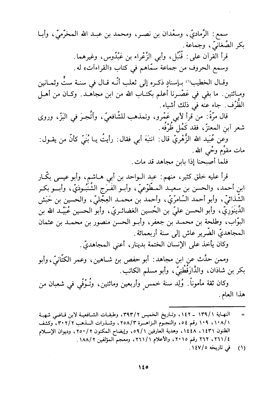 فلمّا أصبحنا إذا بابن مجاهد قد مات.