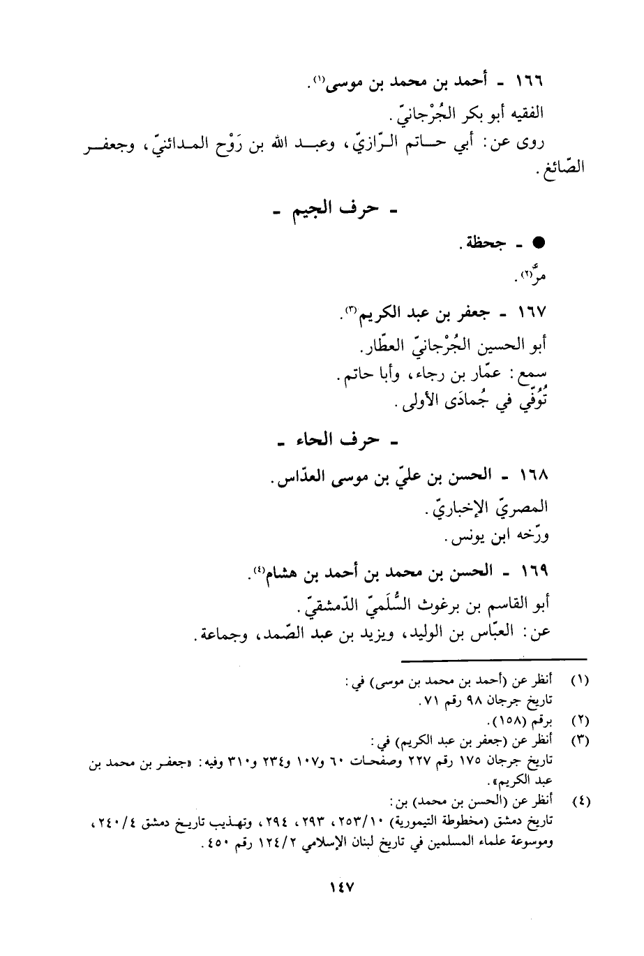 تاريخ جرجان 175 رقم 227 وصفحات 60 و 107 و 234 و 310 وفيه: «جعفر بن محمد بن عبد الكريم» .