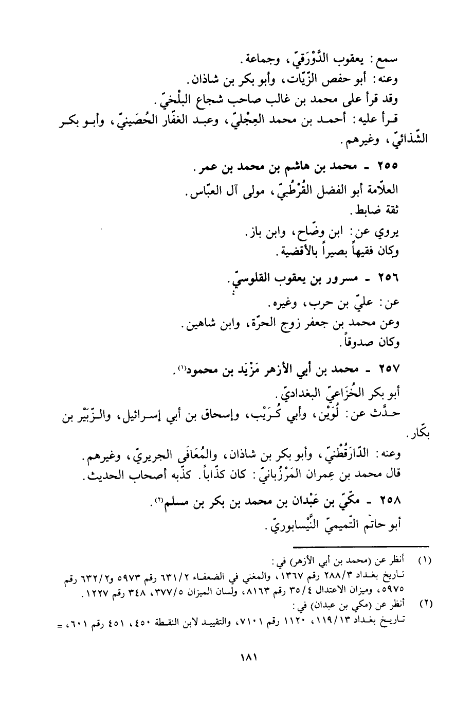 تاريخ بغداد 13/ 119، 1120 رقم 7101، والتقييد لابن النقطة 450، 451 رقم 601، -