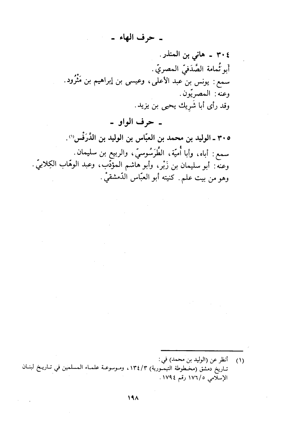 305- الوليد بن محمد بن العبّاس بن الوليد بن الدَّرَفْس [1] .