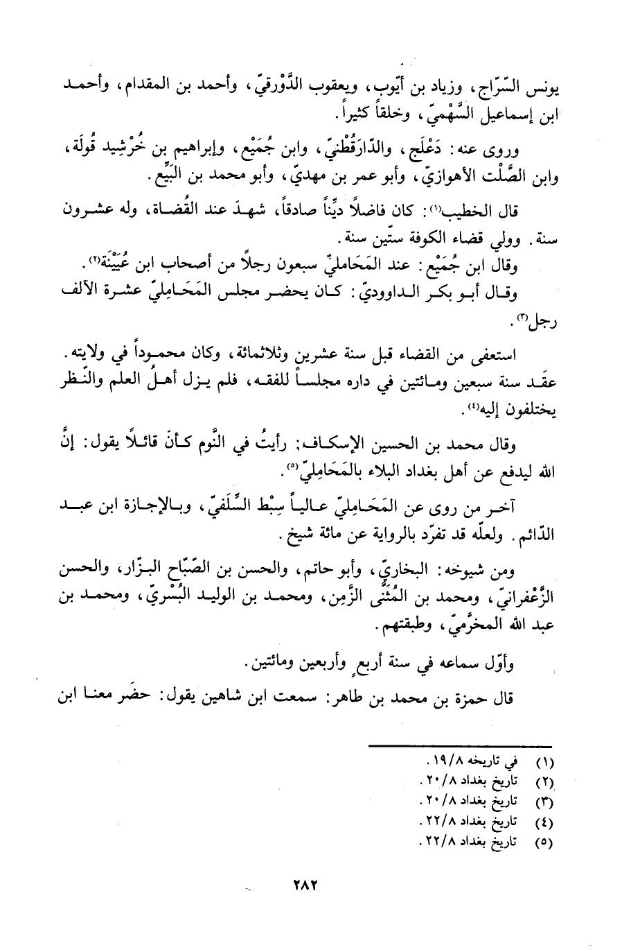 قال حمزة بن محمد بن طاهر: سمعتُ ابن شاهين يقول: حضر معنا ابن