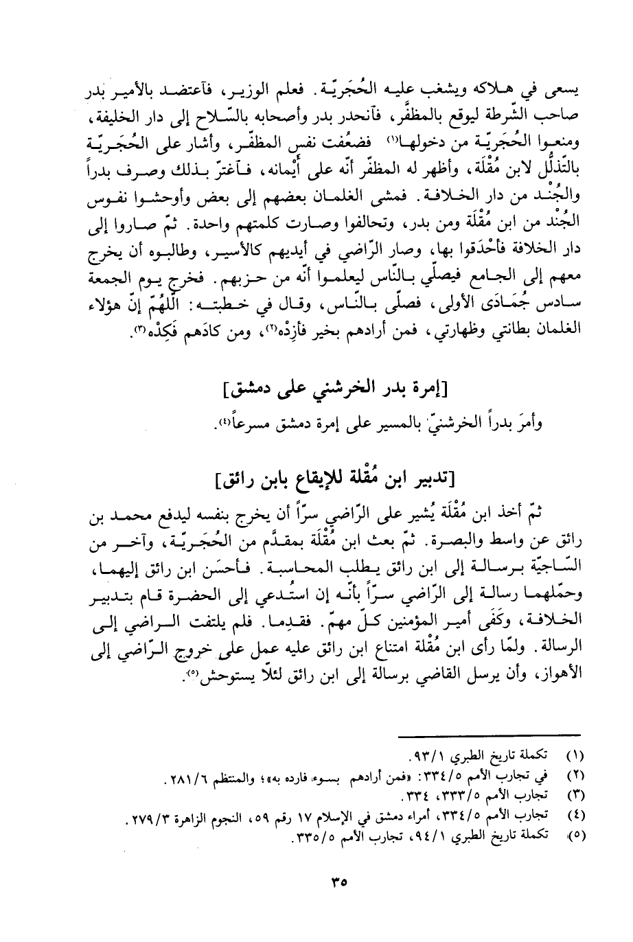 [5] تكملة تاريخ الطبري 1/ 94، تجارب الأمم 5/ 335.