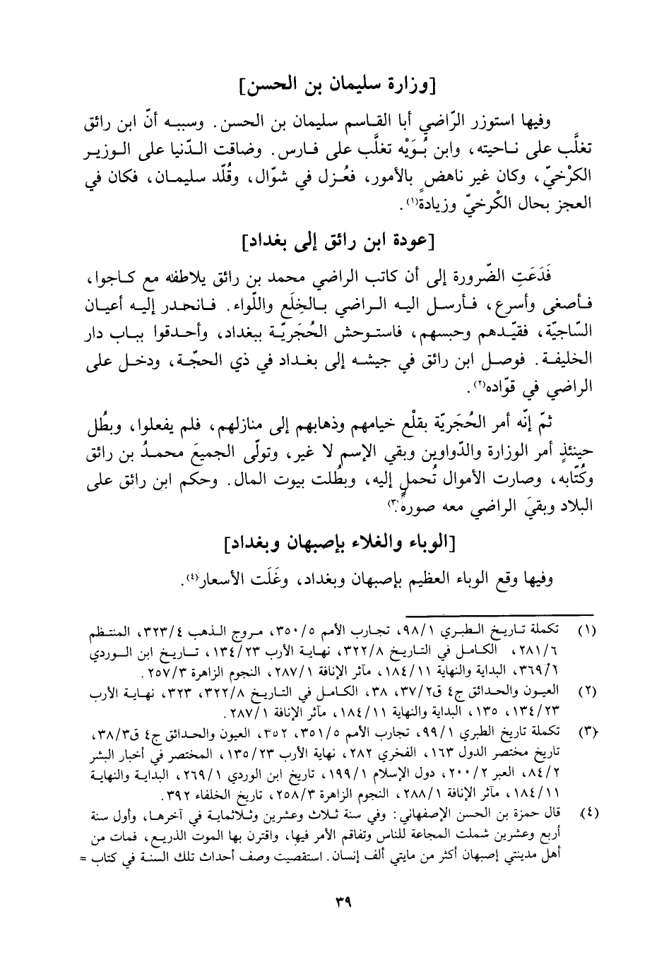 [3] تكملة تاريخ الطبري 1/ 99، تجارب الأمم 5/ 351، 352، العيون والحدائق ج 4 ق 3/ 38، تاريخ مختصر الدول 163، الفخري 282، نهاية الأرب 23/ 135، المختصر في أخبار البشر 2/ 84، العبر 2/ 200، دول الإسلام 1/ 199، تاريخ ابن الوردي 1/ 269، البداية والنهاية 11/ 184، مآثر الإنافة 1/ 288، النجوم الزاهرة 3/ 258، تاريخ الخلفاء 392.