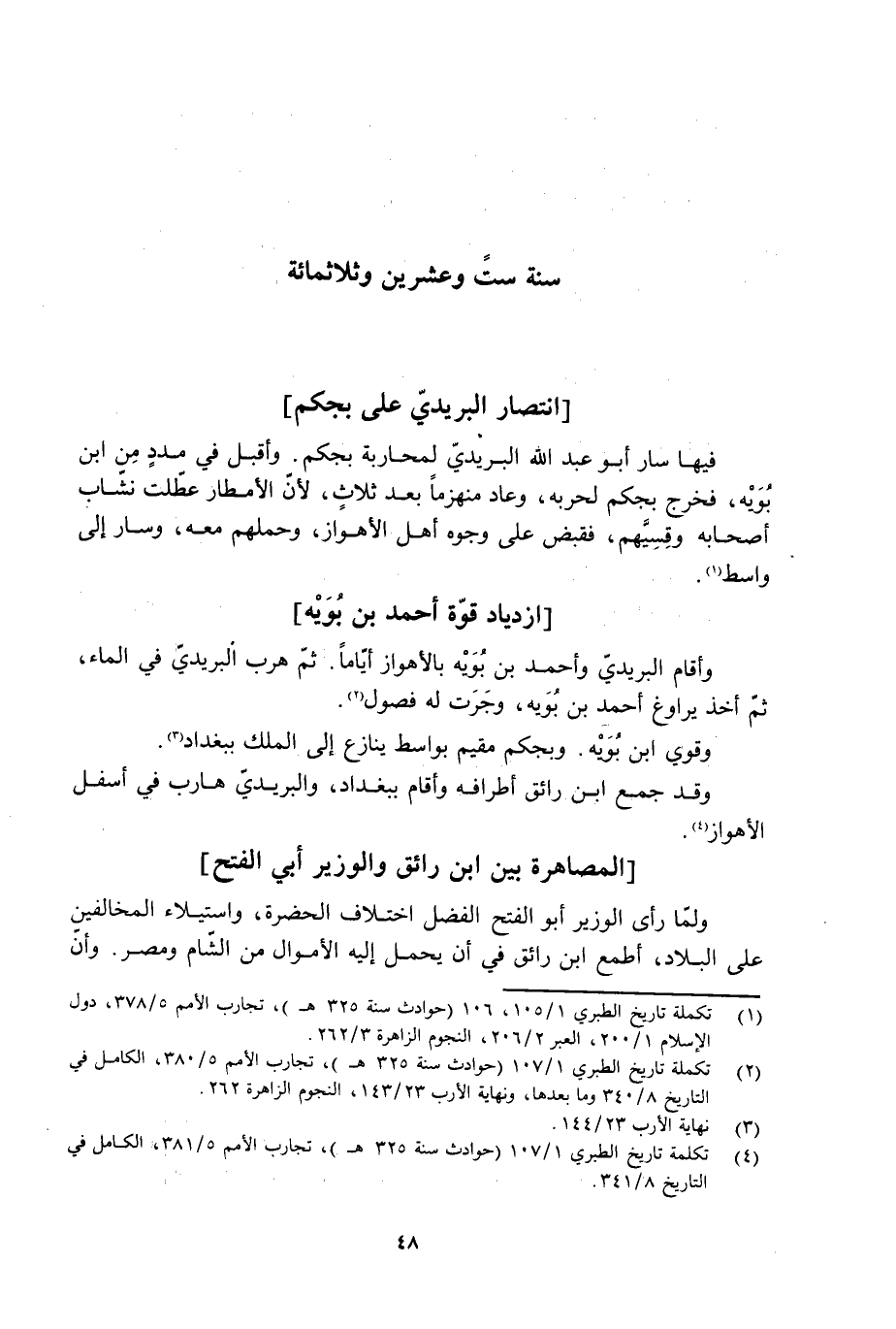 [4] تكملة تاريخ الطبري 1/ 107 (حوادث سنة 325 هـ) ، تجارب الأمم 5/ 381، الكامل في التاريخ 8/ 341.
