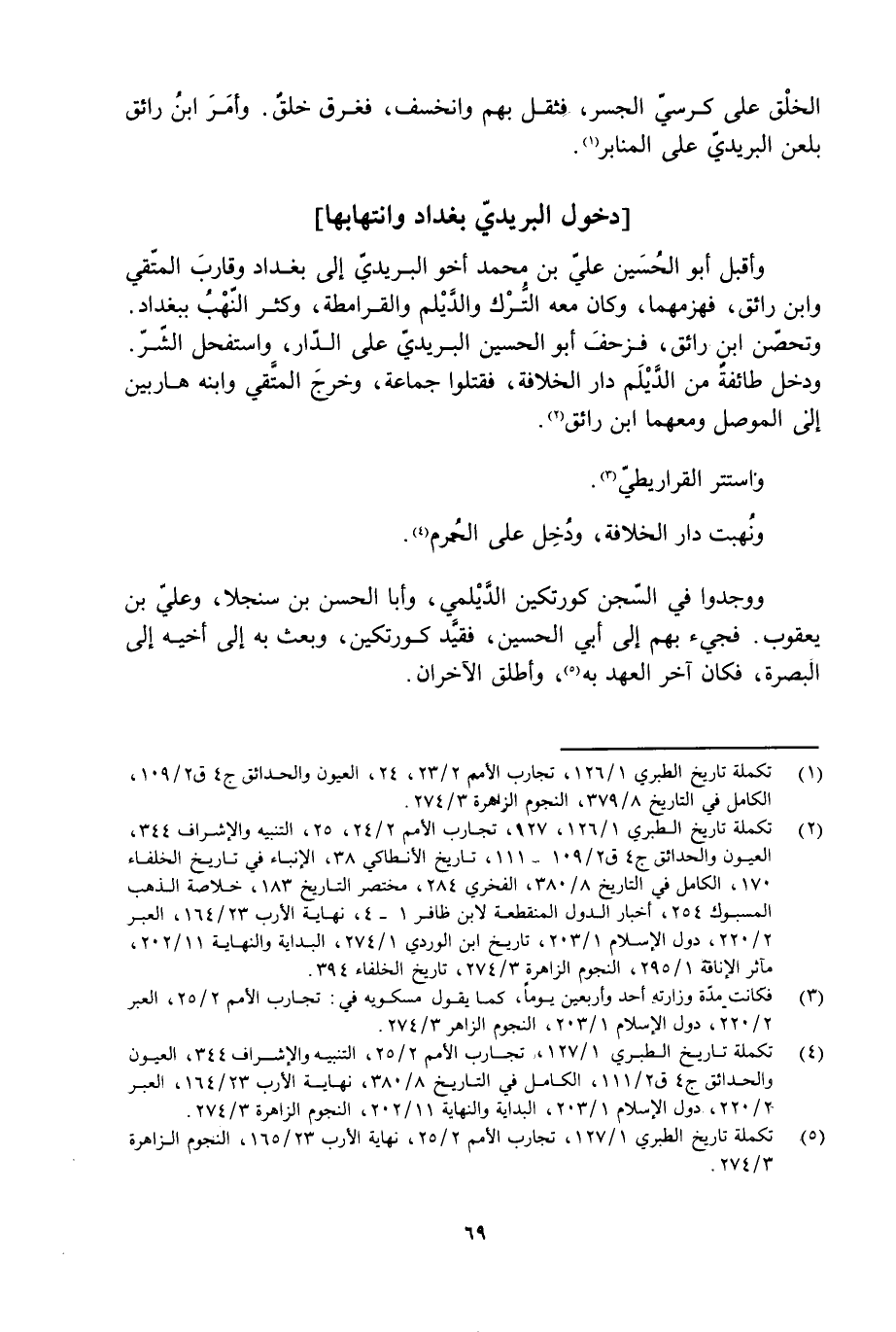 [5] تكملة تاريخ الطبري 1/ 127، تجارب الأمم 2/ 25، نهاية الأرب 23/ 165، النجوم الزاهرة 3/ 274.