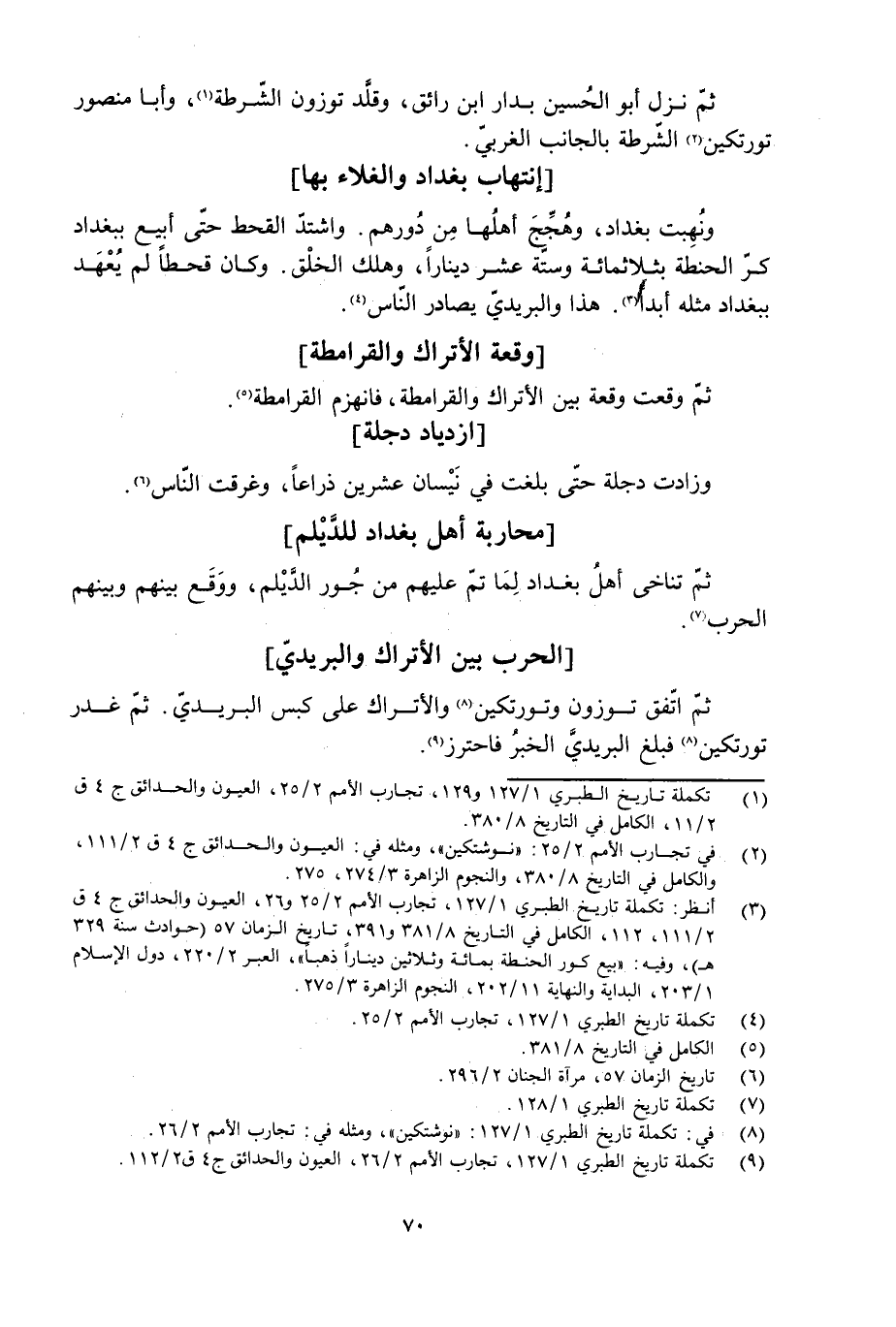 [9] تكملة تاريخ الطبري 1/ 127، تجارب الأمم 2/ 26، العيون والحدائق ج 4 ق 2/ 112.
