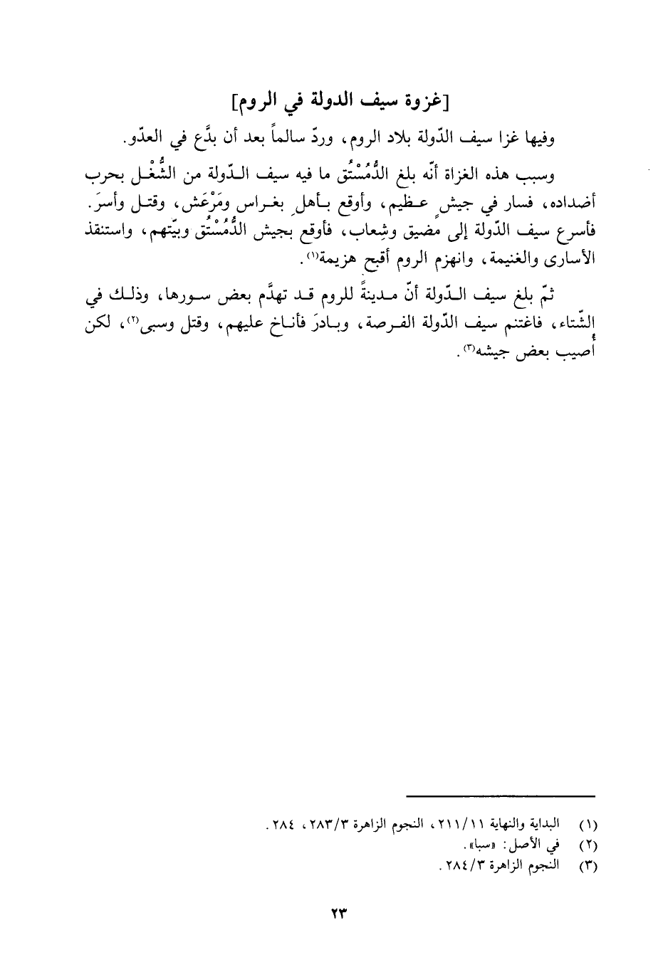 وفيها غزا سيف الدّولة بلاد الروم، وردّ سالمًا بعد أن بدع في العدّو.