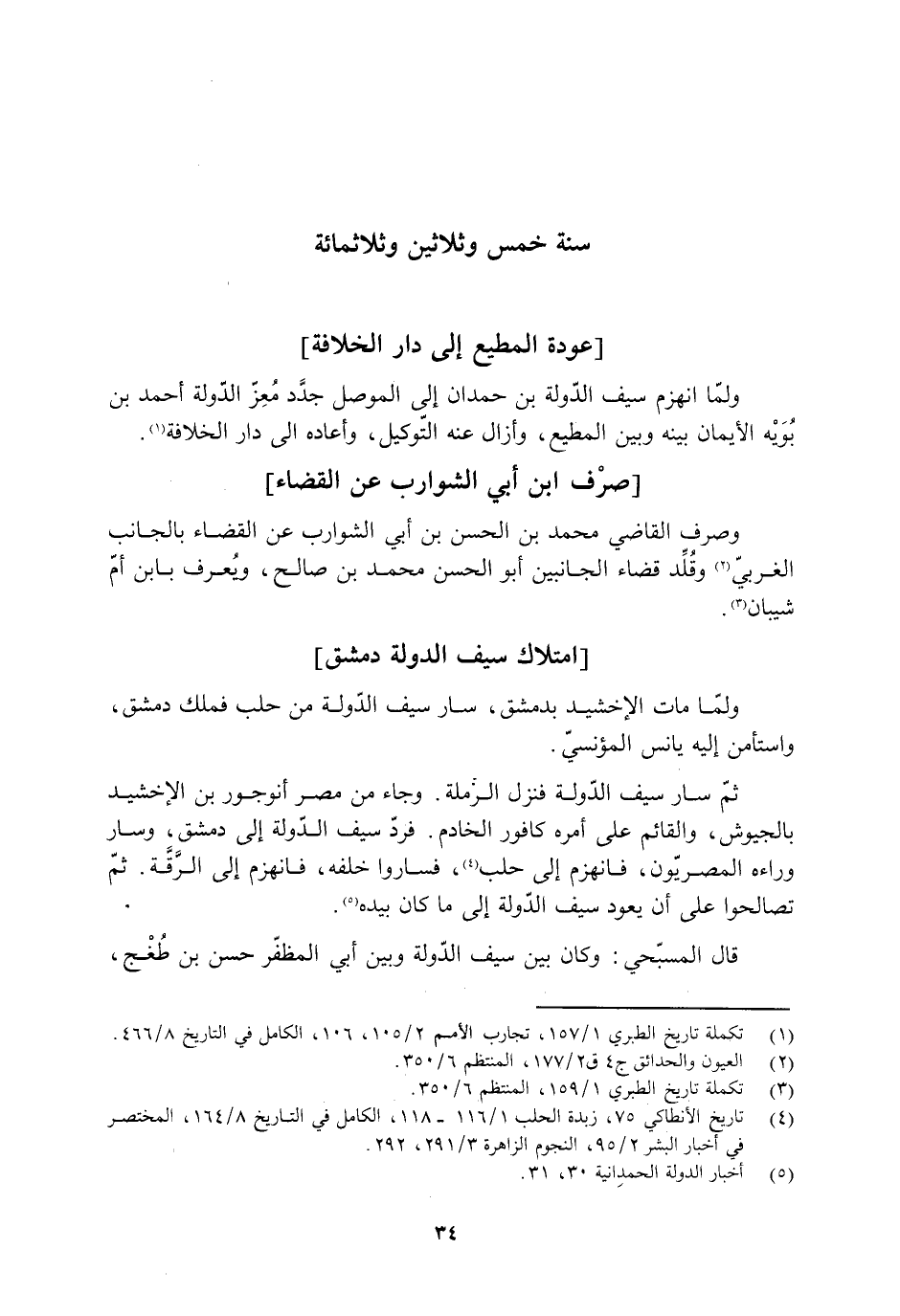 [4] تاريخ الأنطاكي 75، زبدة الحلب 1/ 116- 118، الكامل في التاريخ 8/ 164، المختصر في أخبار البشر 2/ 95، النجوم الزاهرة 3/ 291، 292.