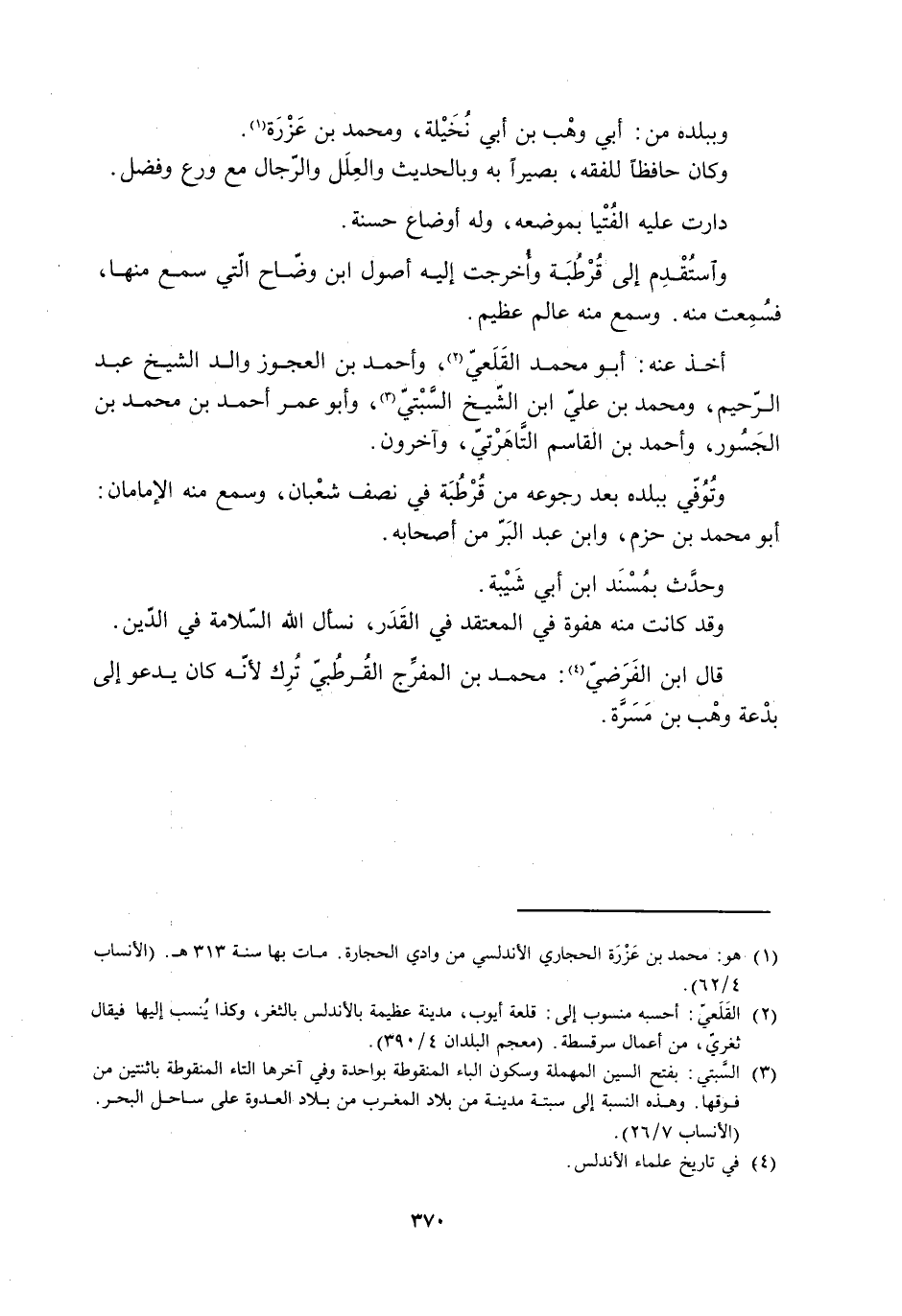 [1] هو: محمد بن عزرة الحجاري الأندلسي من وادي الحجارة. مات بها سنة 313 هـ. (الأنساب 4/ 62) .