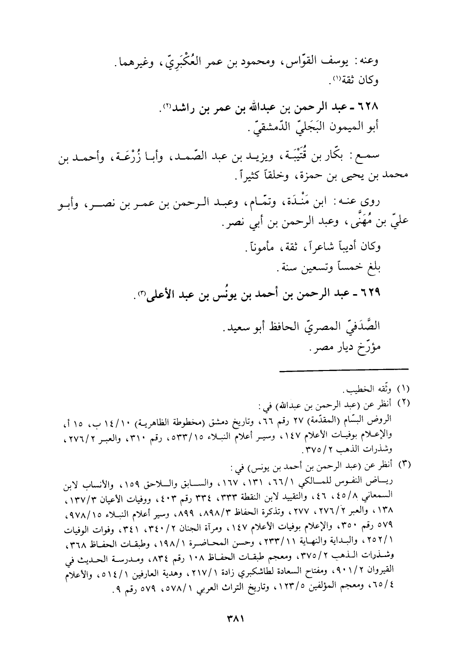 628- عَبْدِ الرَّحْمَنِ بْنِ عَبْدِ اللَّهِ بْنِ عُمَرَ بْن راشد [2] .