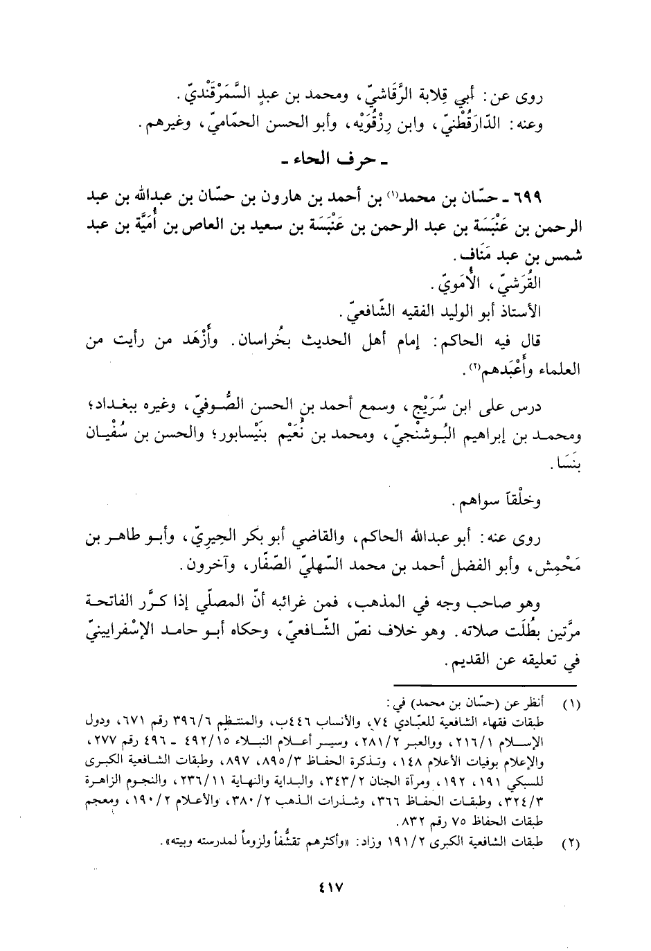[2] طبقات الشافعية الكبرى 2/ 191 وزاد: «وأكثرهم تقشّفا ولزوما لمدرسته وبيته» .