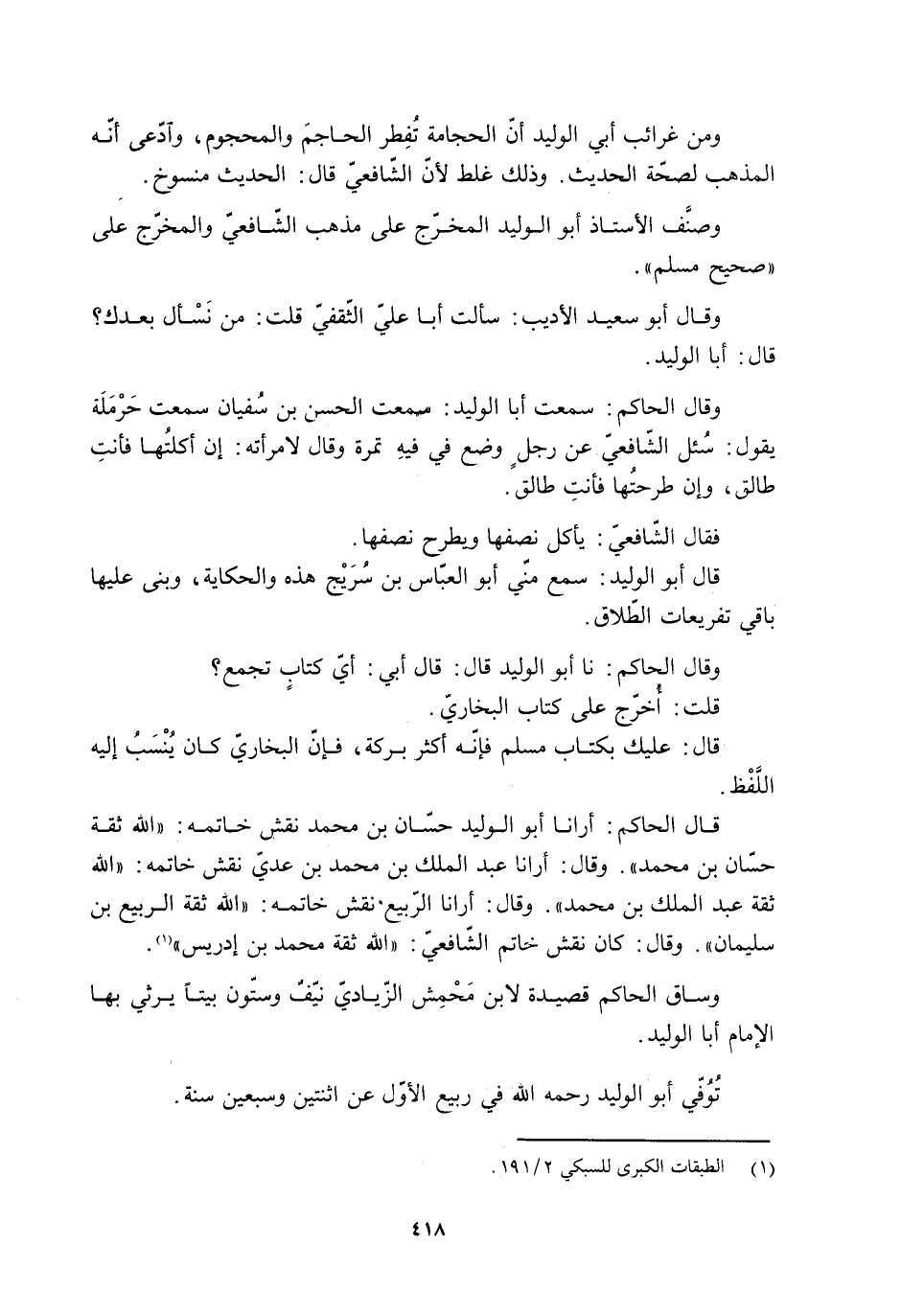 [1] الطبقات الكبرى للسبكي 2/ 191.