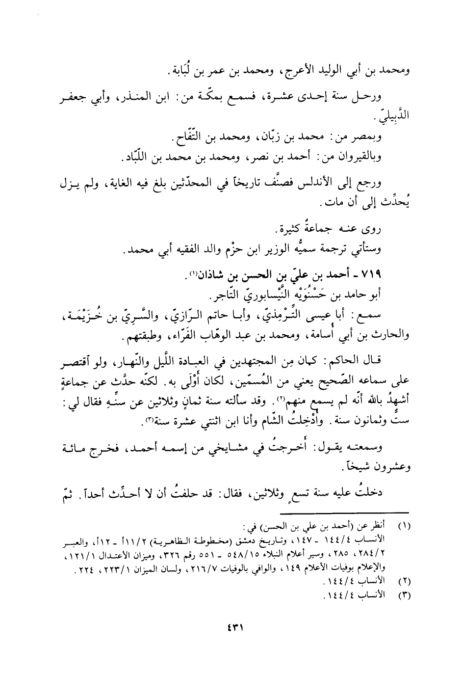 719- أَحْمَد بْن عَلِيّ بْن الْحَسَن بْن شاذان [1] .