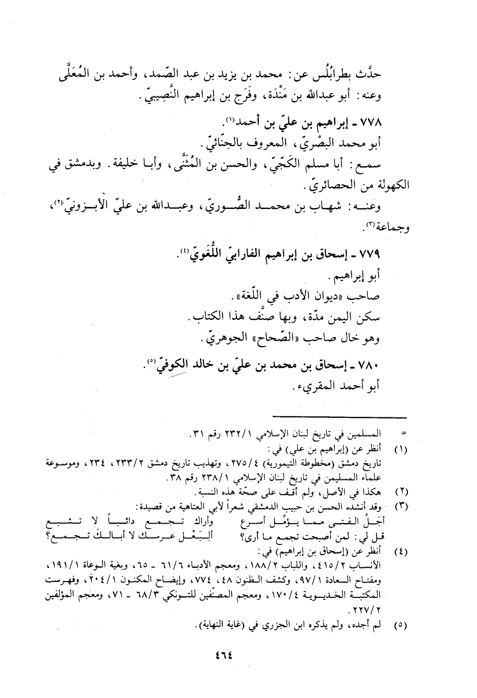 779- إِسْحَاق بْن إبْرَاهِيم الفارابيّ اللُّغَويّ [4] .