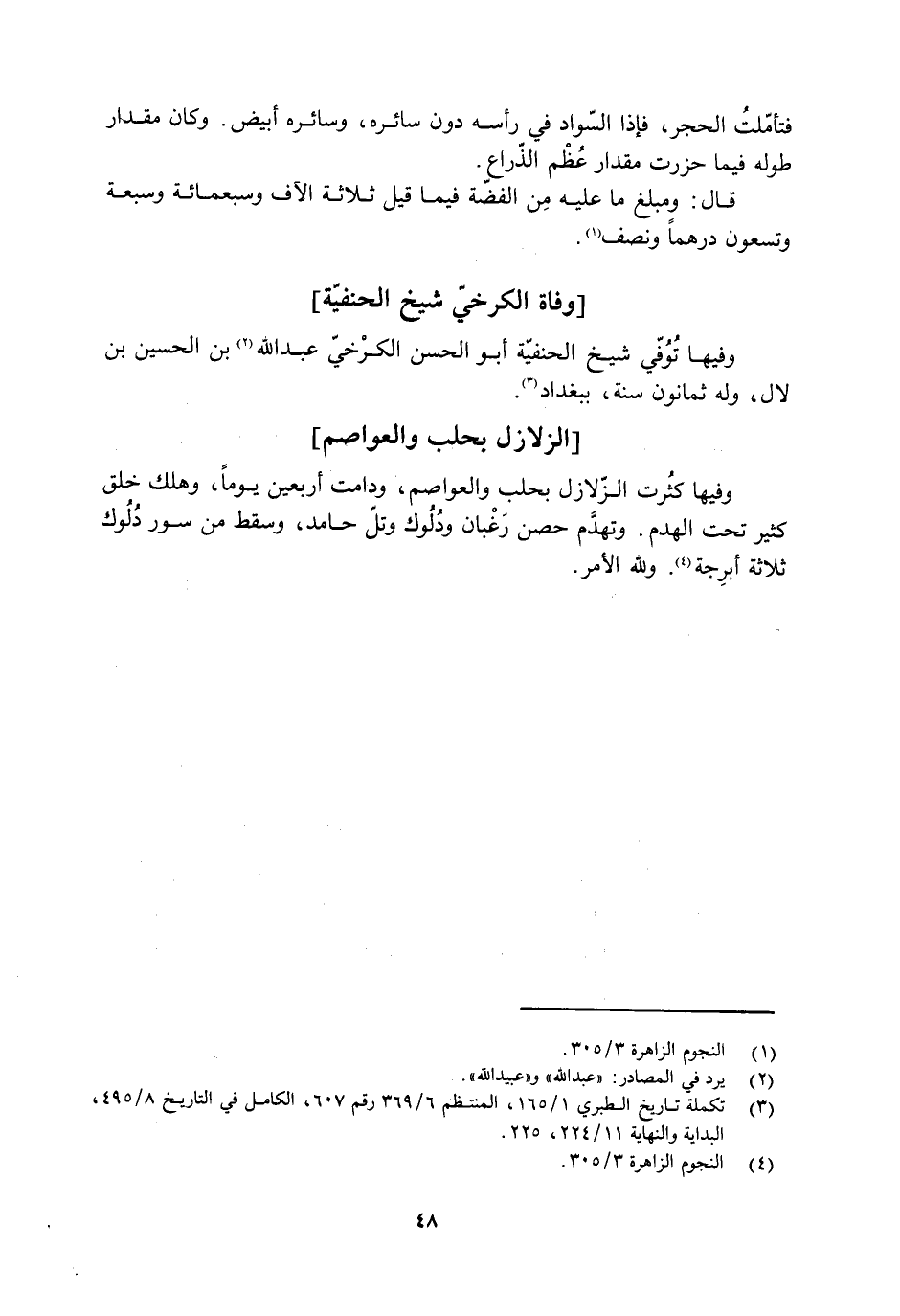 [3] تكملة تاريخ الطبري 1/ 165، المنتظم 6/ 369 رقم 607، الكامل في التاريخ 8/ 495، البداية والنهاية 11/ 224، 225.