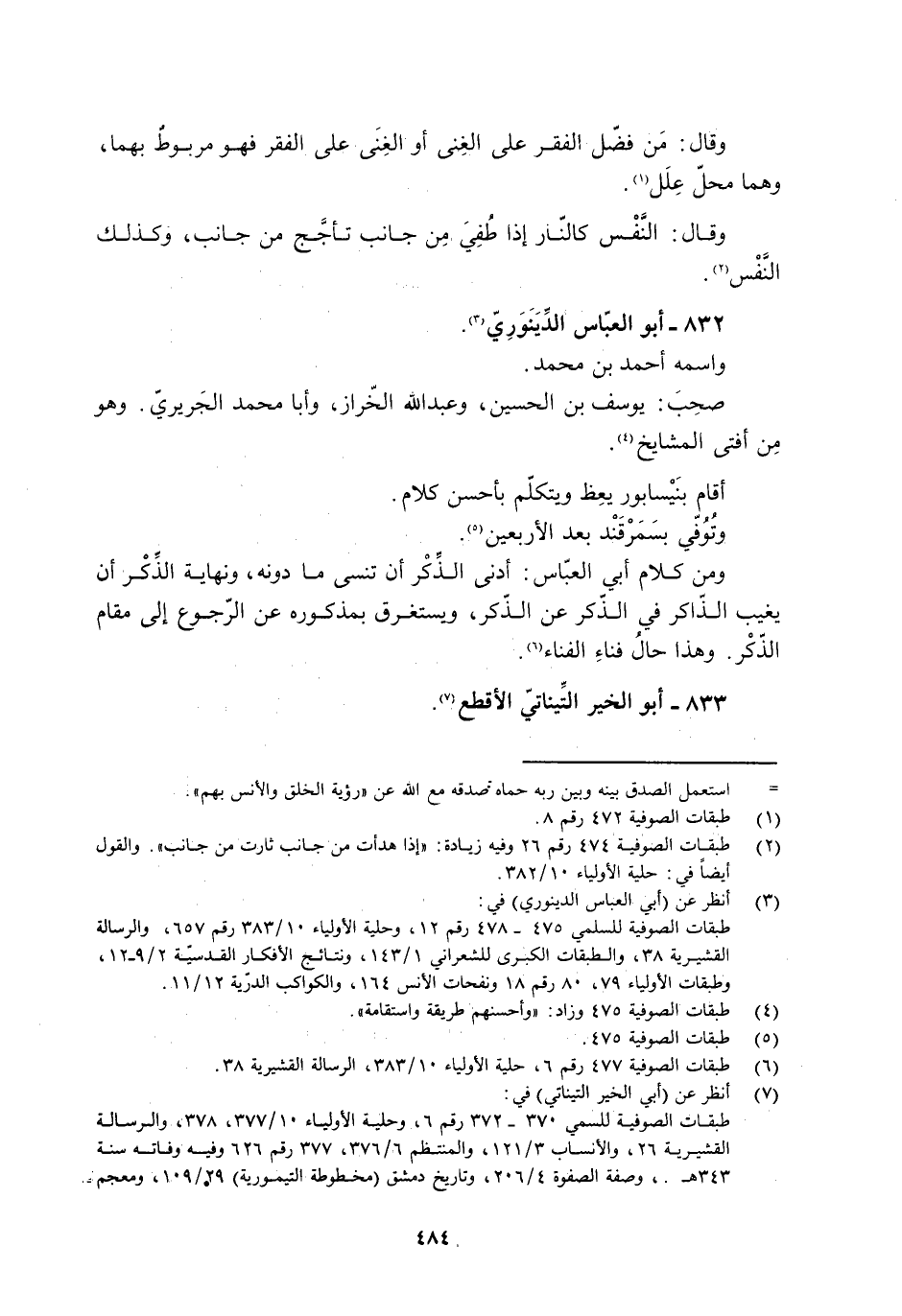 [6] طبقات الصوفية 477 رقم 6، حلية الأولياء 10/ 383، الرسالة القشيرية 38.