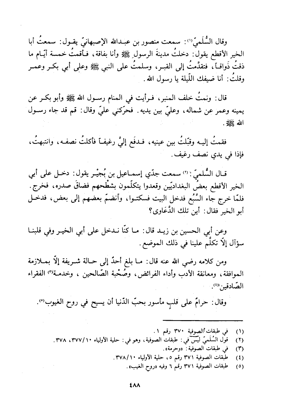 [4] طبقات الصوفية 371 رقم 5، حلية الأولياء 10/ 378.