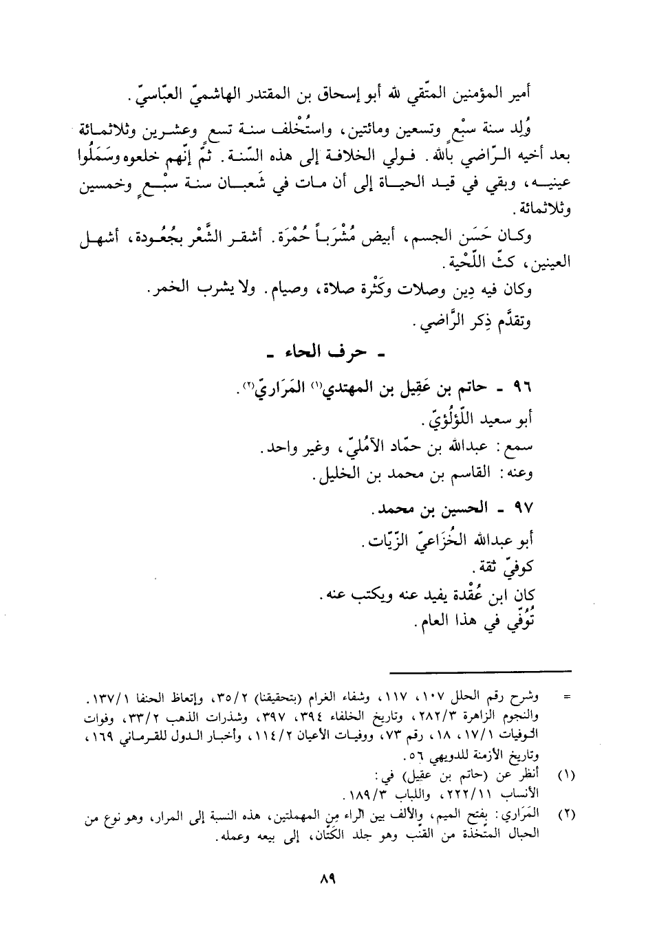 [2] المراري: بفتح الميم، والألف بين الراء من المهملتين، هذه النسبة إلى المرار، وهو نوع من الحبال المتّخذة من القنّب وهو جلد الكتّان، إلى بيعه وعمله.