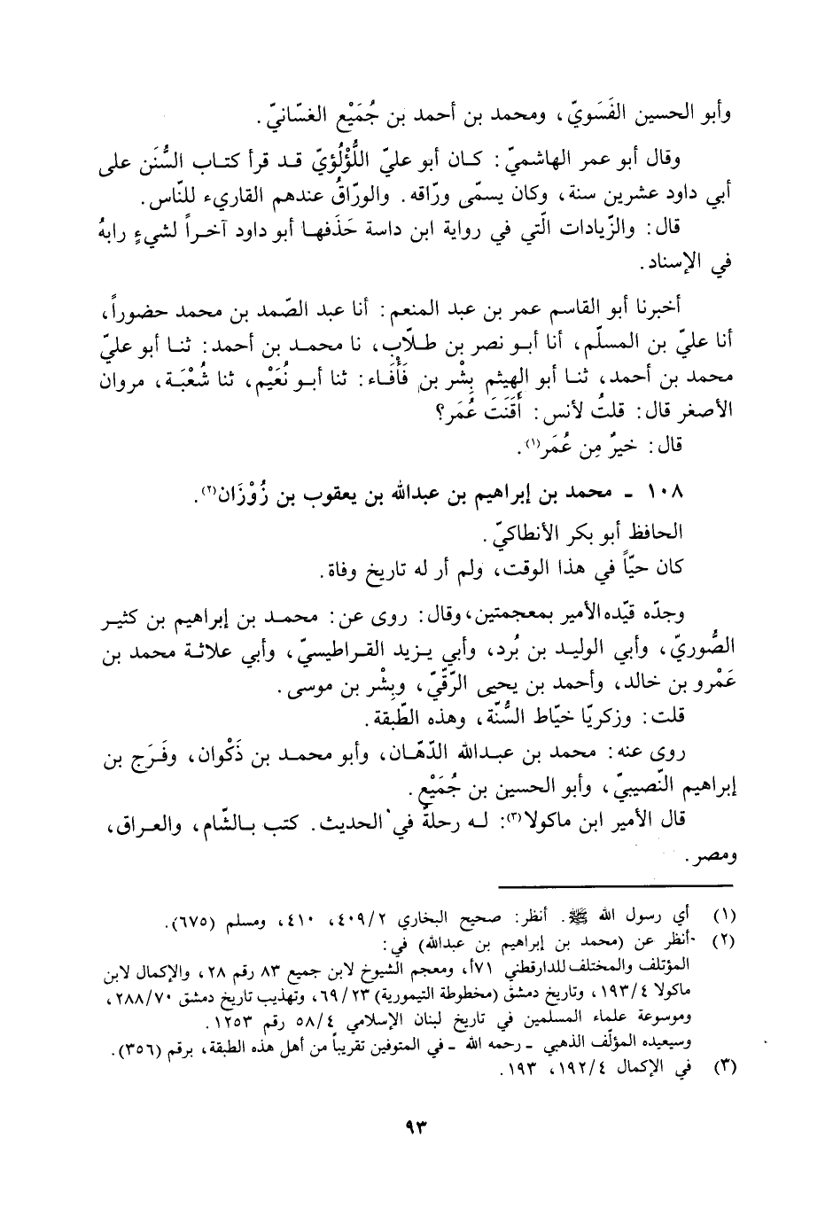 108- مُحَمَّد بْن إِبْرَاهِيم بْن عَبْد اللَّه بْن يعقوب بن زوزان [2] .