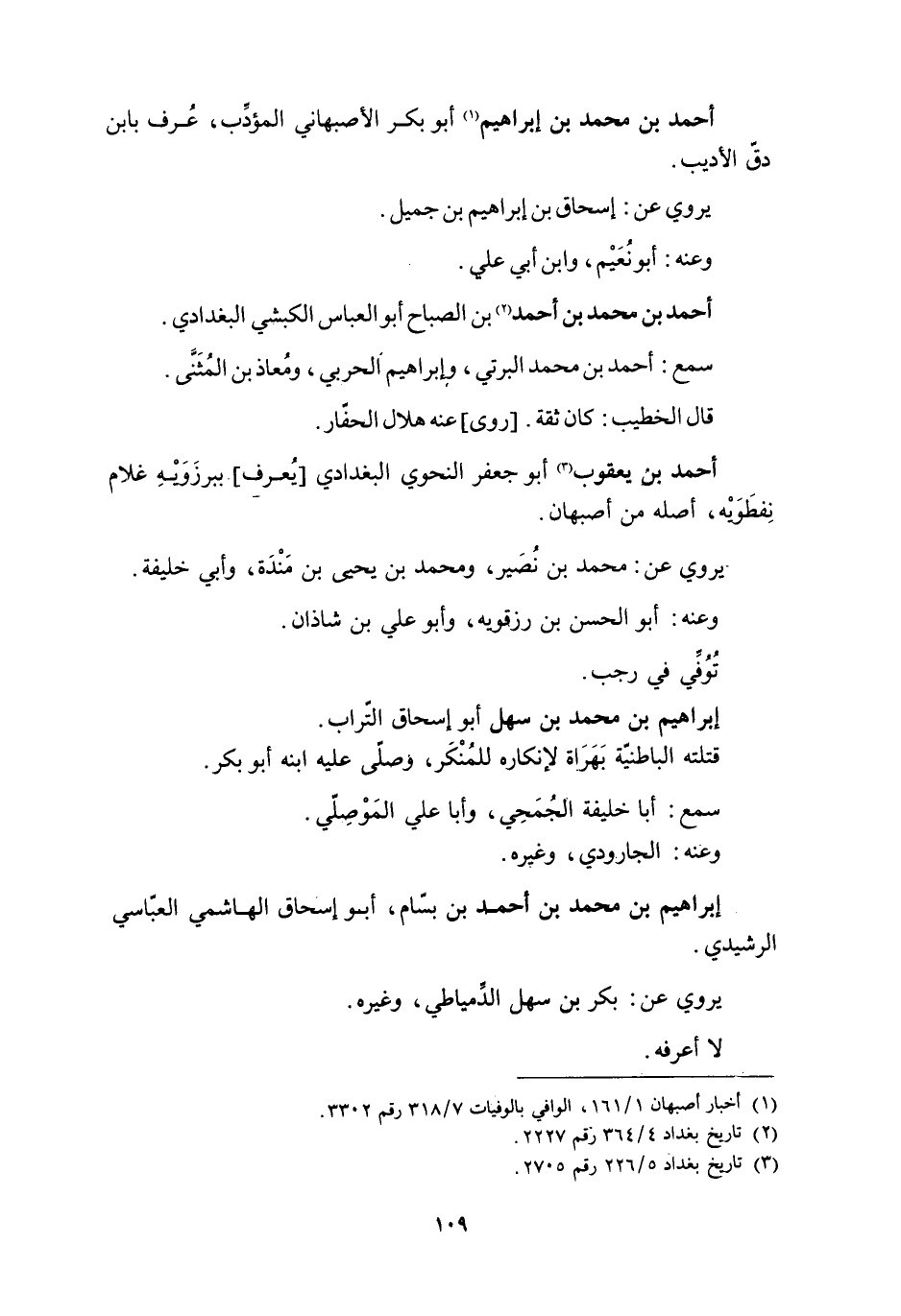 [3] تاريخ بغداد 5/ 226 رقم 2705.