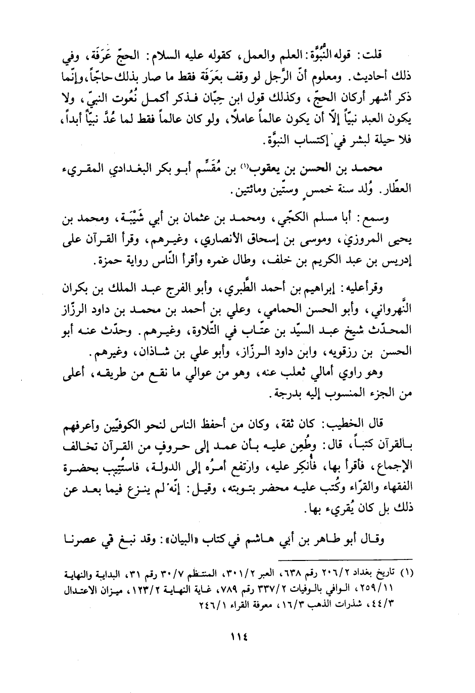 [1] تاريخ بغداد 2/ 206 رقم 638، العبر 2/ 301، المنتظم 7/ 30 رقم 31، البداية والنهاية 11/ 259، الوافي بالوفيات 2/ 337 رقم 789، غاية النهاية 2/ 123، ميزان الاعتدال 3/ 44، شذرات الذهب 3/ 16، معرفة القراء 1/ 246