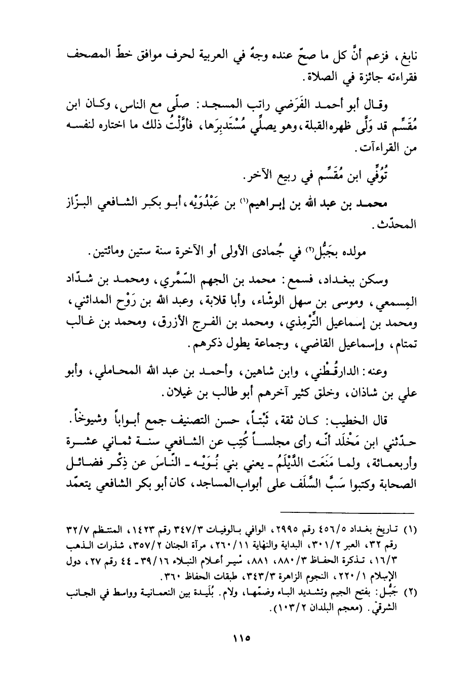 [2] جبّل: بفتح الجيم وتشديد الباء وضمّها، ولام. بليدة بين النعمانية وواسط في الجانب الشرقي. (معجم البلدان 2/ 103) .