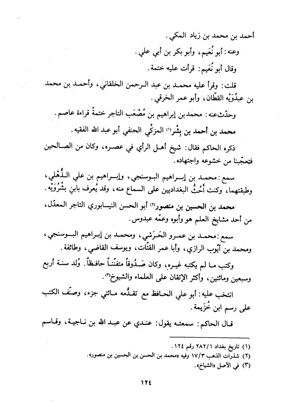 [2] شذرات الذهب 3/ 17 وفيه «محمد بن الحسن بن الحسين بن منصور» .