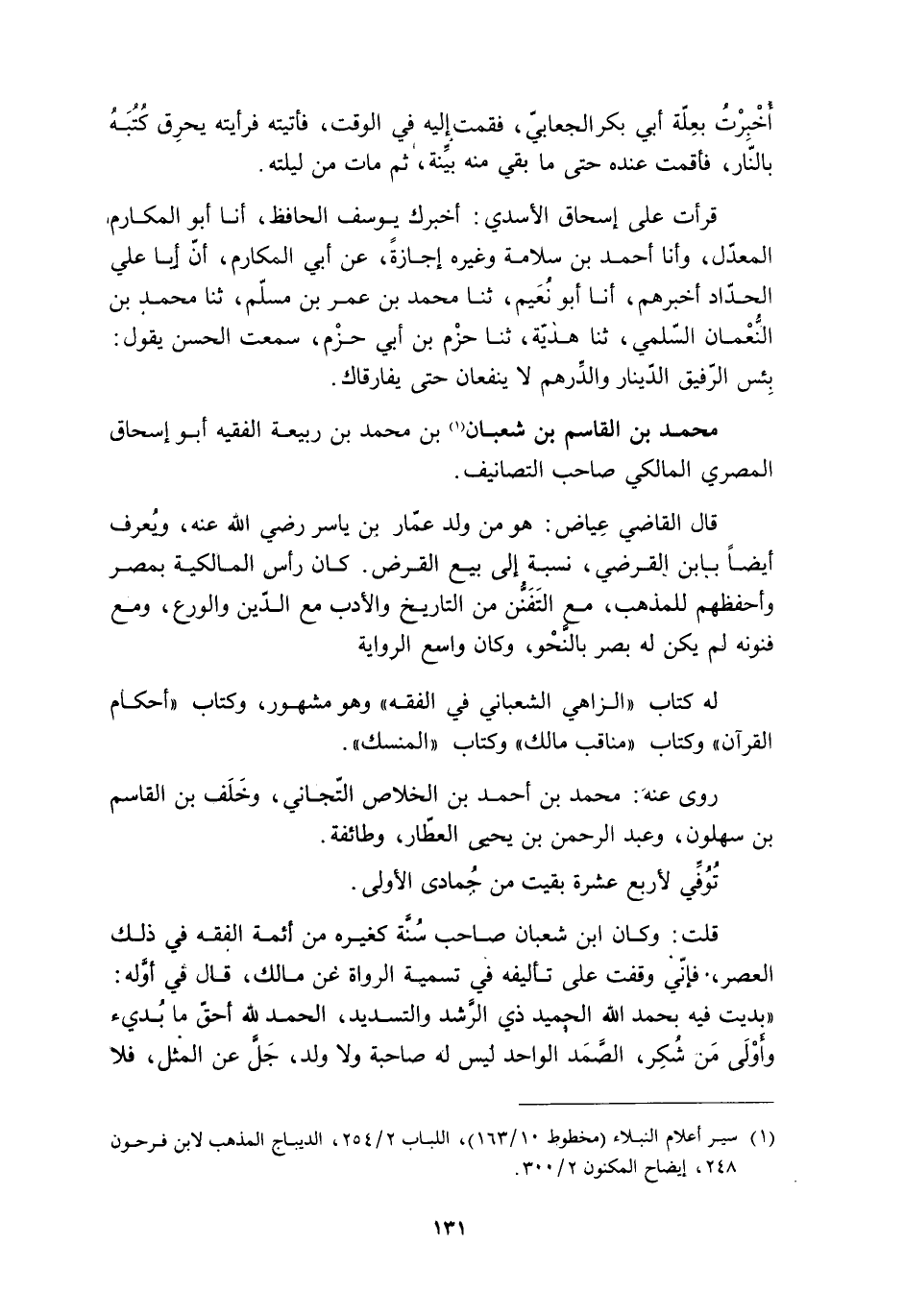 محمد بن القاسم بن شعبان [1] بن محمد بن ربيعة الفقيه أبو إسحاق المصري المالكي صاحب التصانيف.